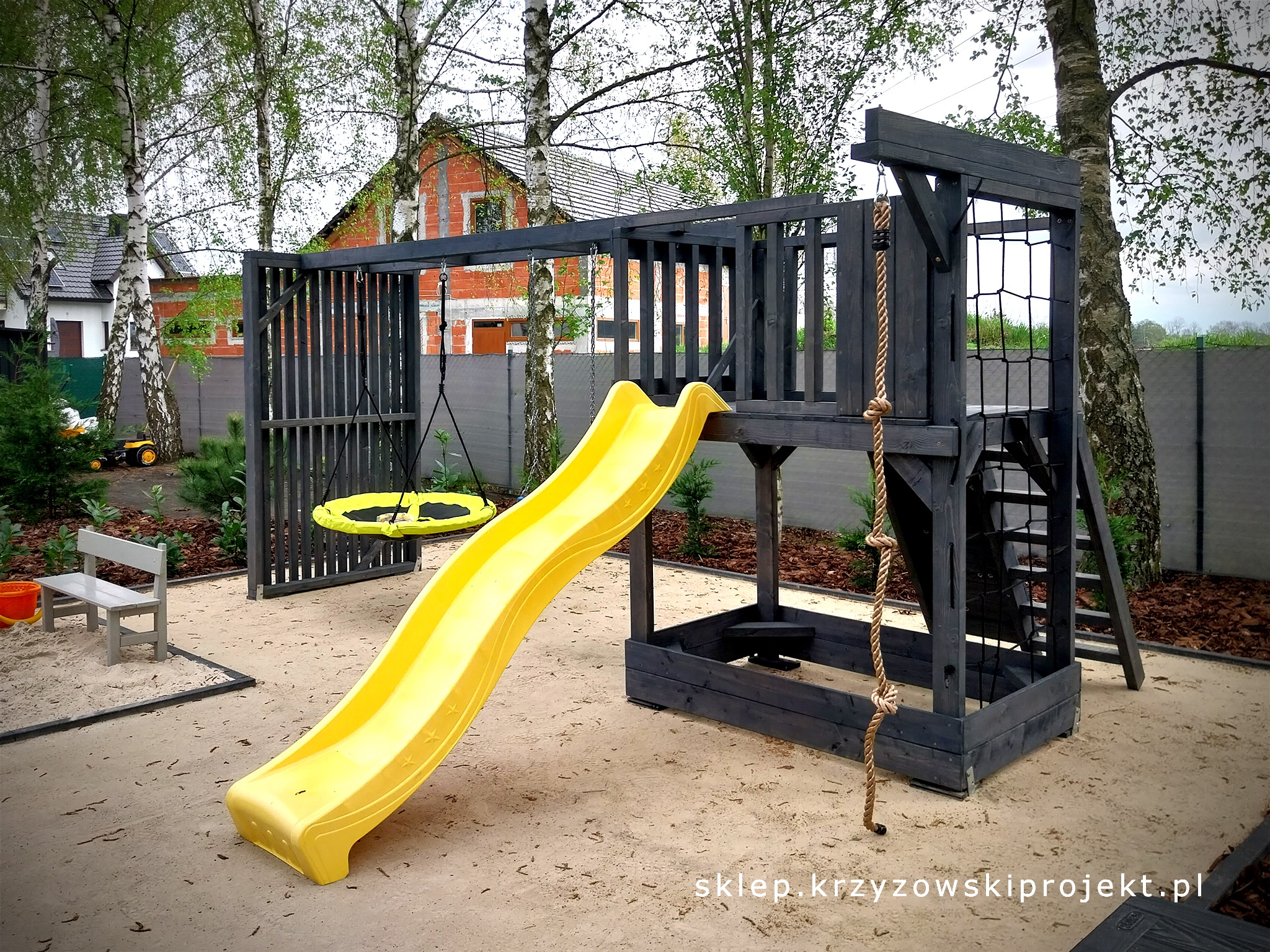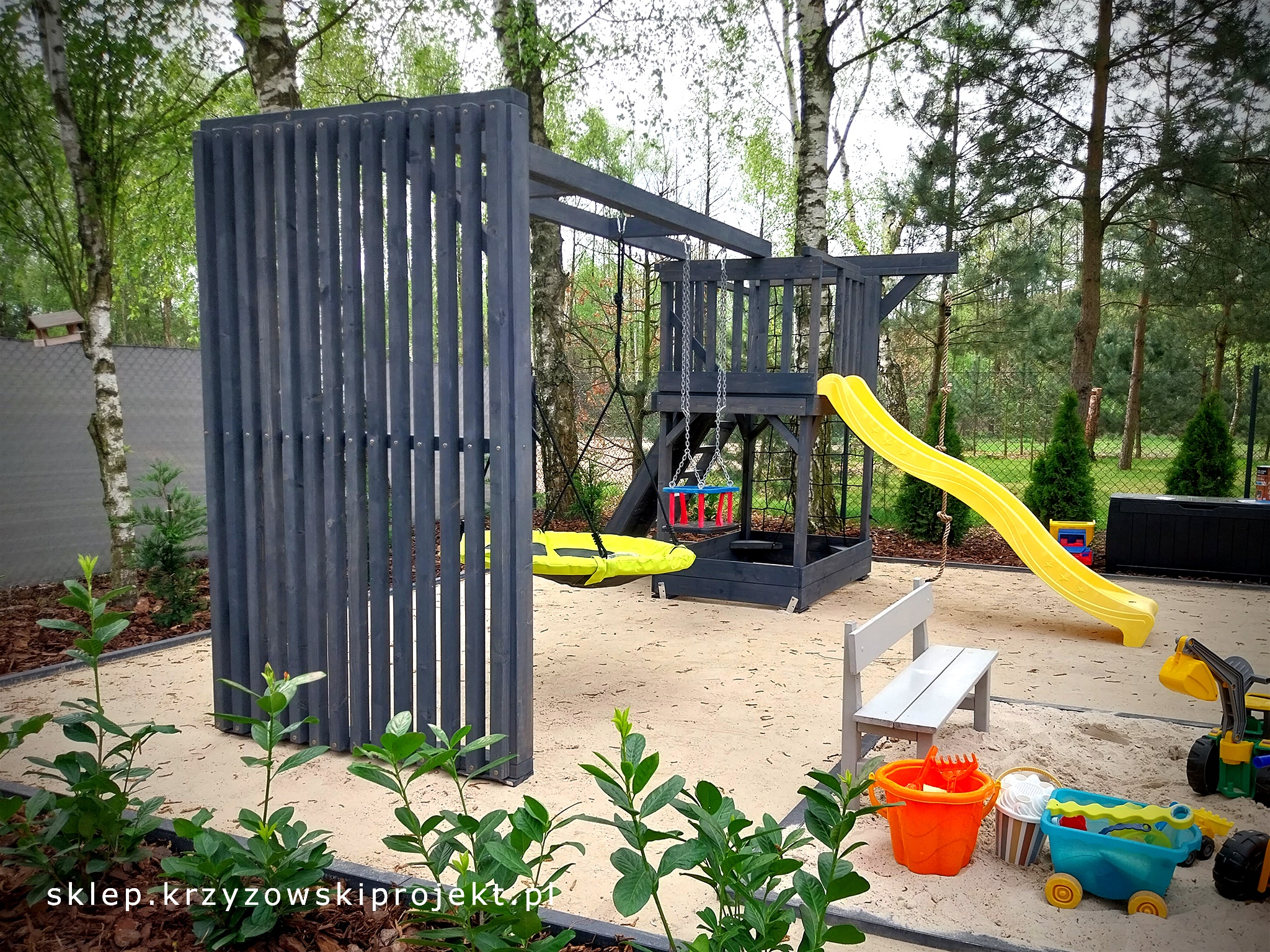 10) Piaskownica – (wys. 2 deski + dwuczęściowa pokrywa + 2x siedziska ),