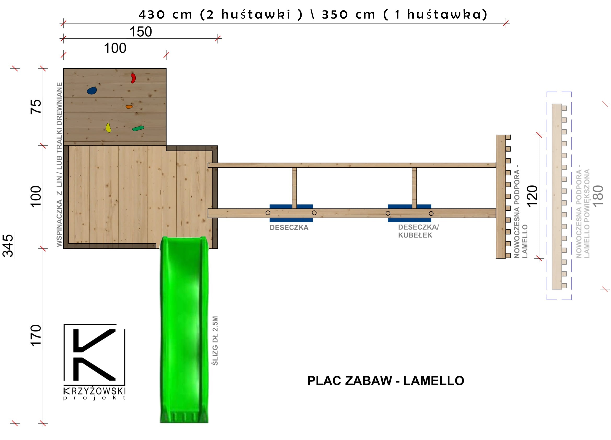 4) Podest do wspinaczki szer. 90 cm, lub 45 /45 cm wspinaczka wielofunkcyjna ze schodkami.