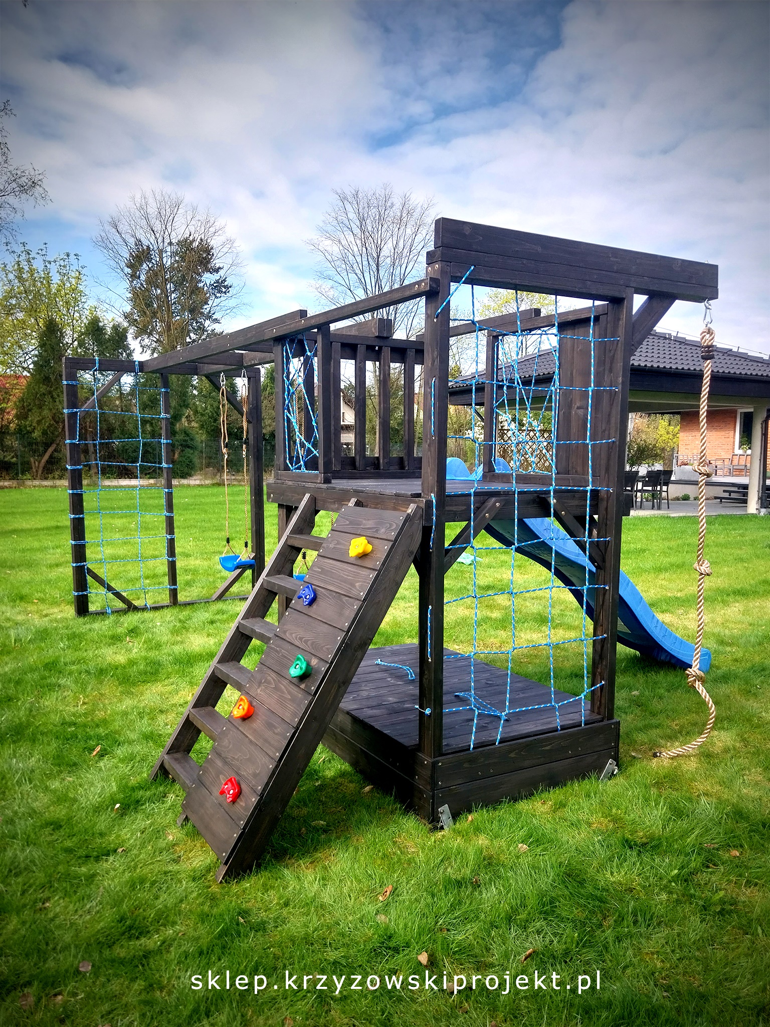 5) Ścianka linowa do wspinaczki 200 x 100 cm.,